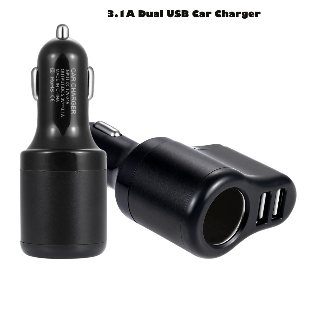 TOLBEST 3in1 Car Charger, [3.1A/12W/5V] 2 Port Car Charger for iPhone 6S Plus 6 Plus 6 5SE 5S, Samsung Galaxy S7 S6 Edge Plus Note 5 4 S5 Tab S, LG G5 G4, HTC,Nexus 5X 6P, iPads Portable