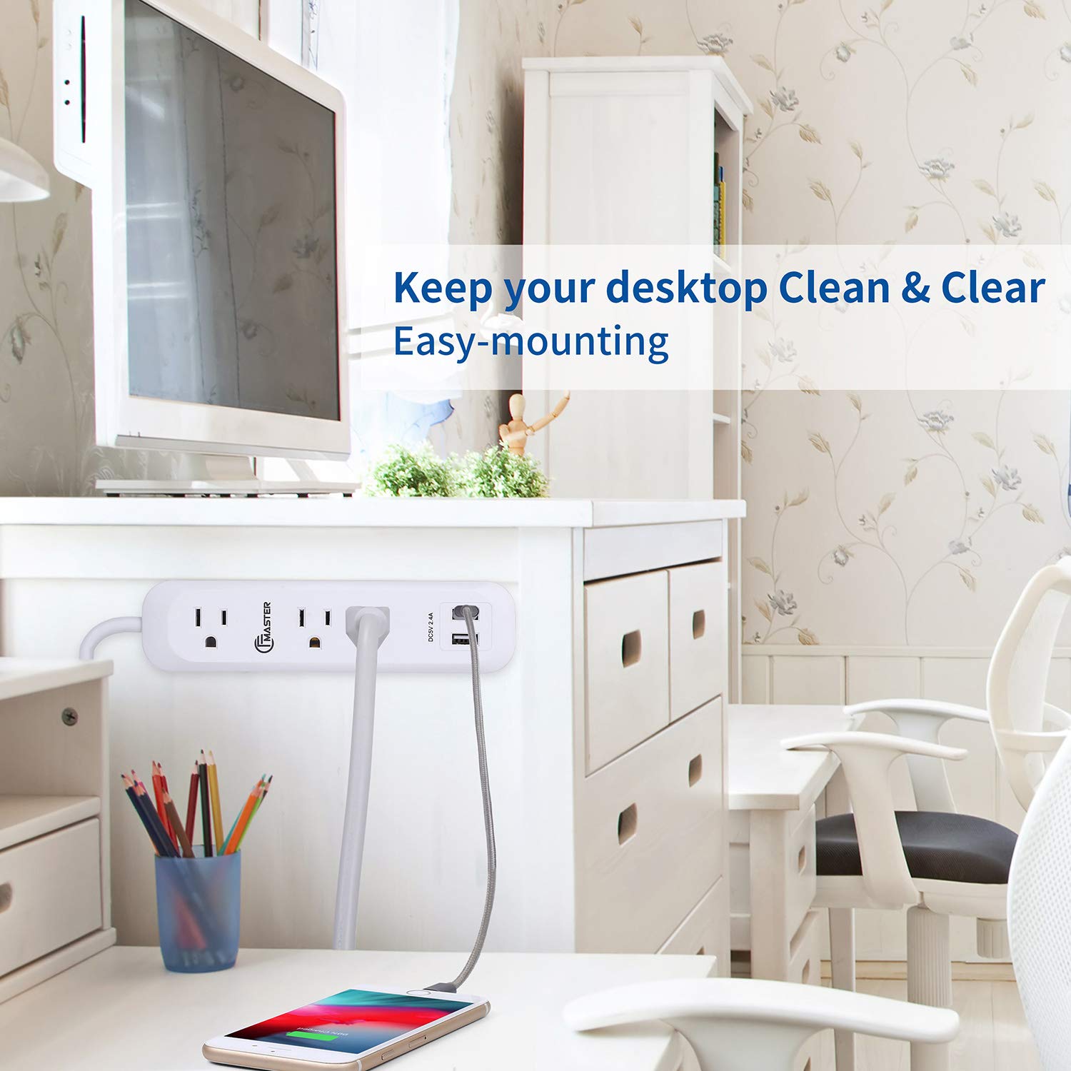USB Power Strip Surge Protector Long Extension Cord 6 feet, 3 Outlets, 2 USB Ports (2.4A/12W), Overload Protection, Mountable Power Strip for Home Office, 1250W/10A, SGS Listed, White