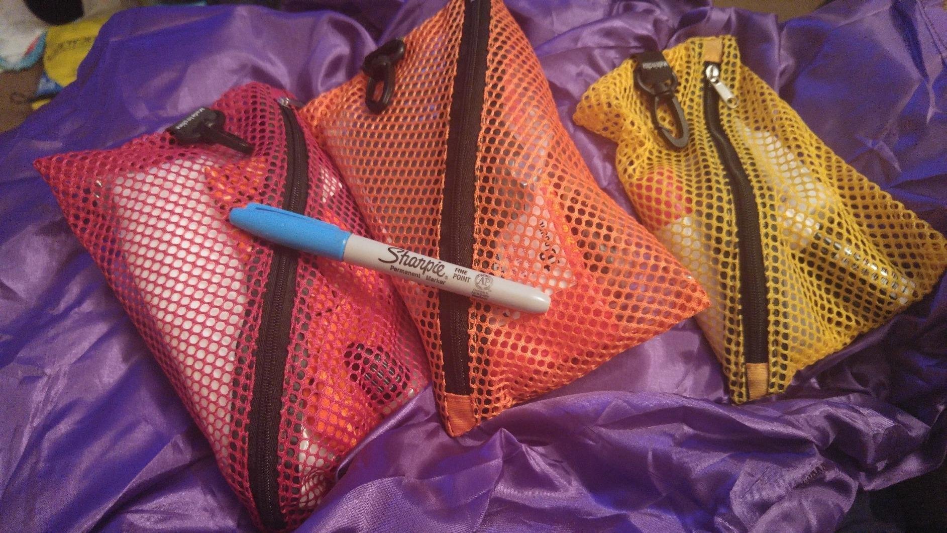 together in your bag? Separate them in color-coded mesh bags and reclaim