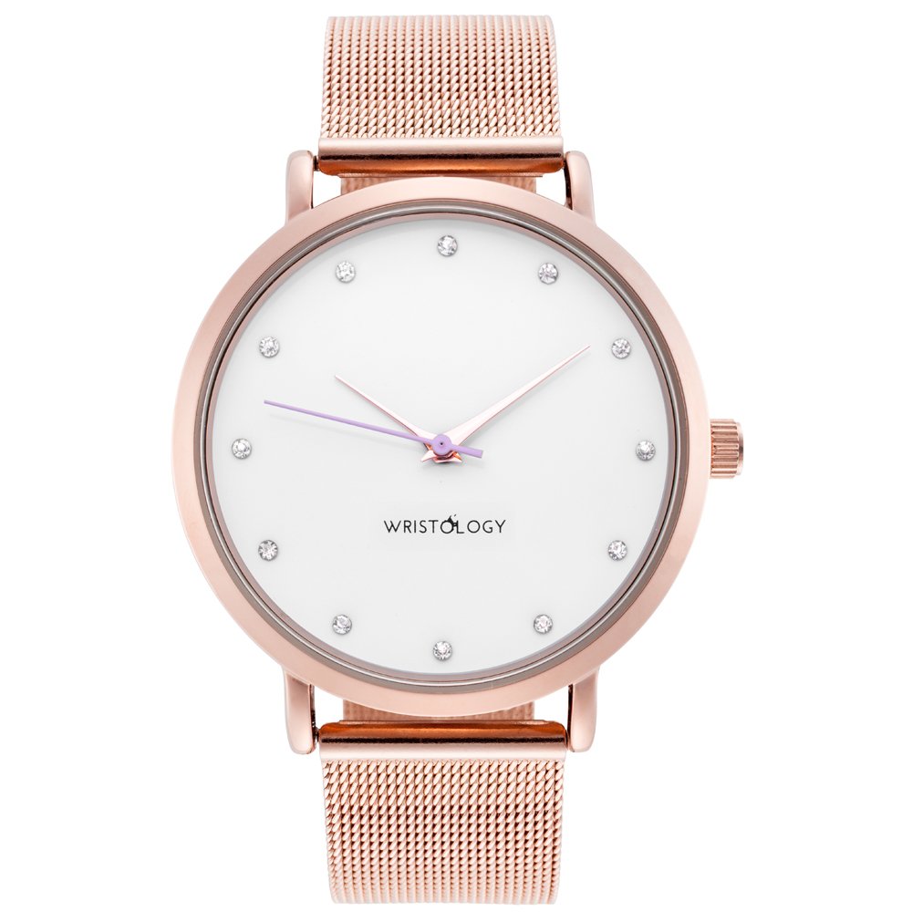 WRISTOLOGY Olivia Womens Crystal Rose Gold Boyfriend Watch Metal Mesh Strap